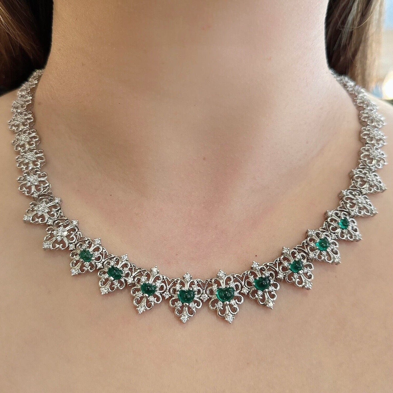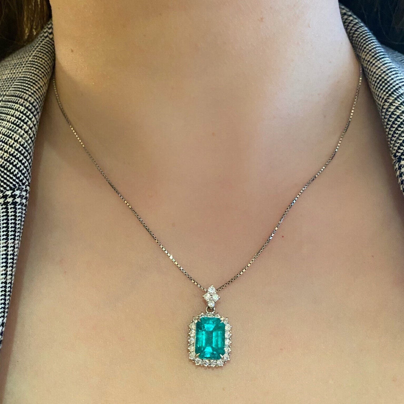 Large Pear Emerald Drop Earrings with Diamonds in 18k White Gold