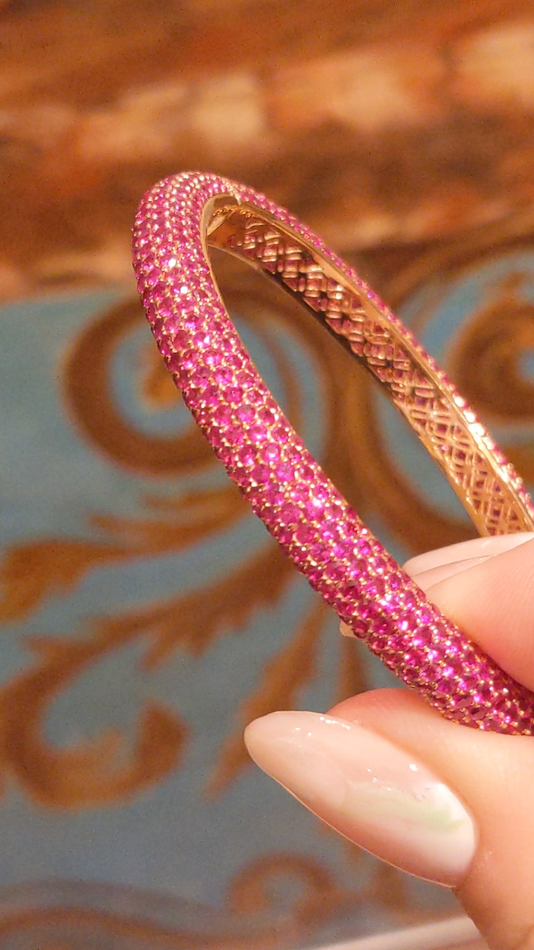 19.22 carats Ruby Pave Bangle Bracelet in 18k Rose Gold