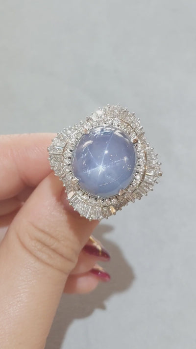 36.02 ct Star Sapphire and Diamond Ring in Platinum