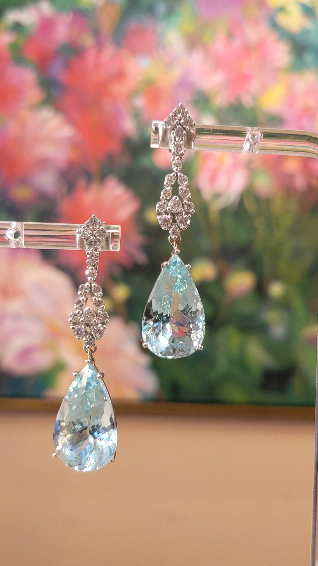 Aquamarine and Diamond Drop Earrings in 18k White Gold
