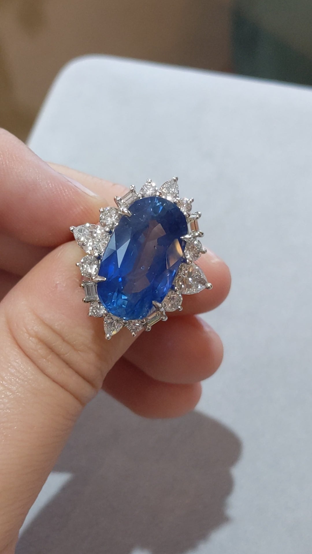 Certified Natural Oval Sapphire 19.17 ct and Diamond Ring in White Gold