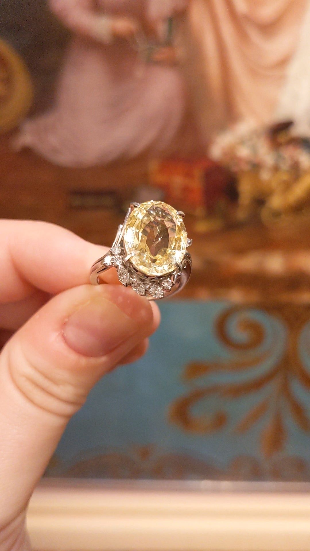 GIA 8.72 ct Unheated Ceylon Yellow Sapphire & Diamond Ring in Platinum -HM2462ZE