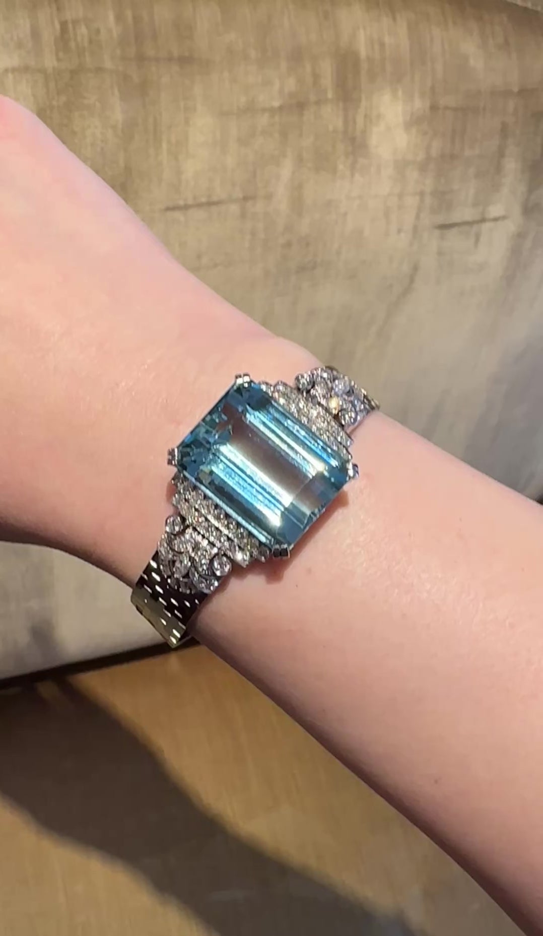 GIA Aquamarine 38.10 ct and Diamond Vintage Bracelet in Platinum and White Gold