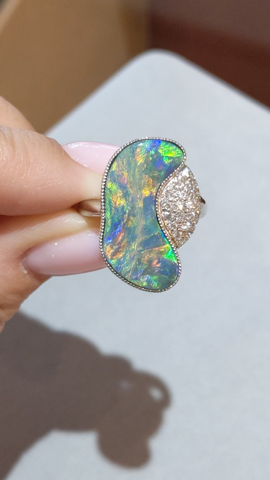 GIA Natural Black Opal 5.40 ct and Diamond Ring in Platinum