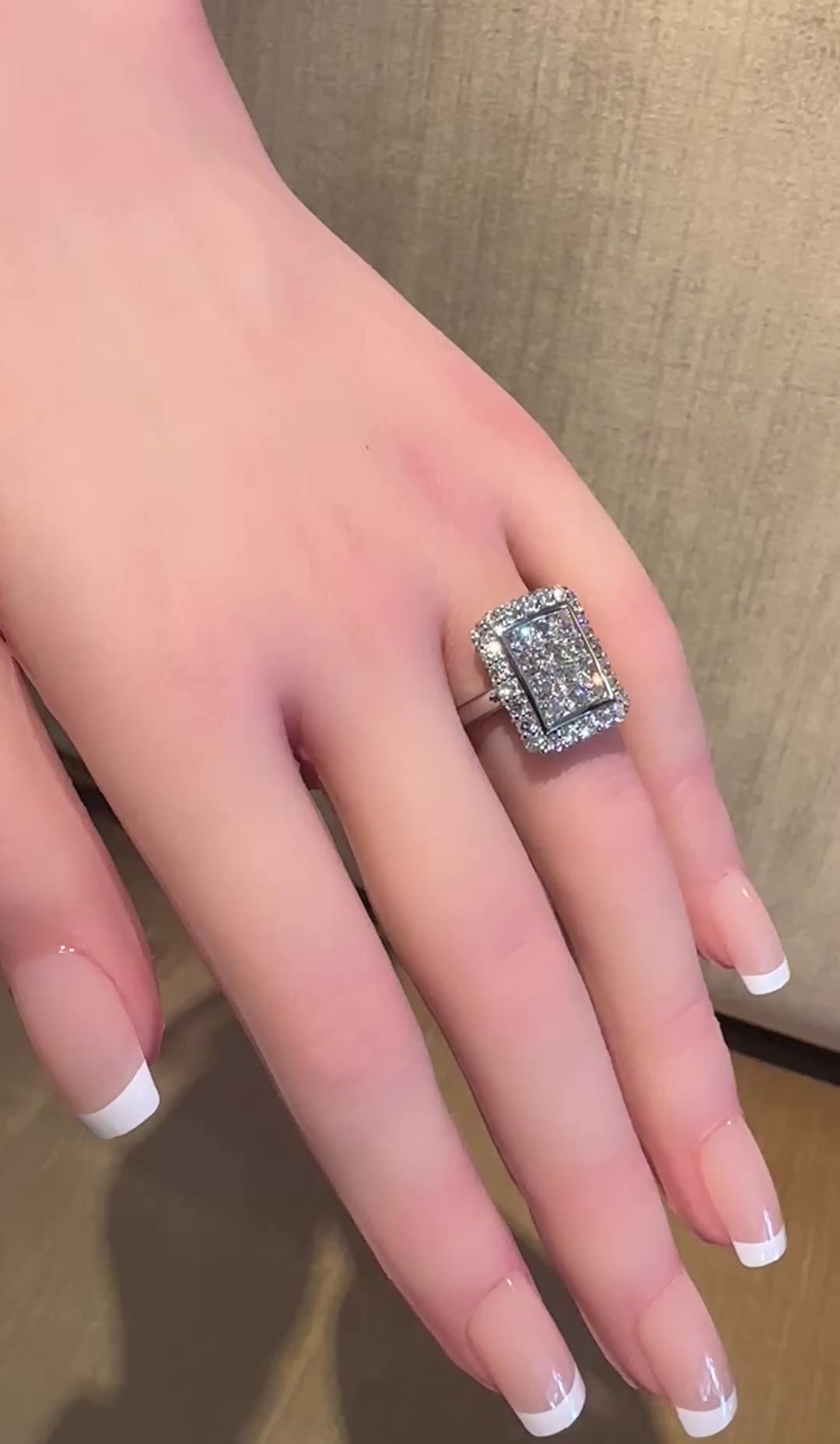 Diamond Ring features Rectangular top with Round Brilliant Diamonds weighing 2.00 carats in total, all set in Platinum.
