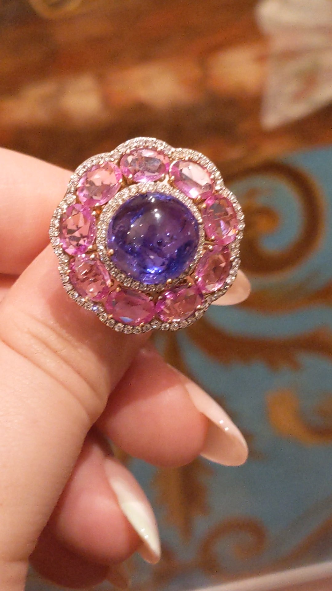 Tanzanite, Pink Sapphire & Diamond Cocktail Ring in 14k Rose Gold